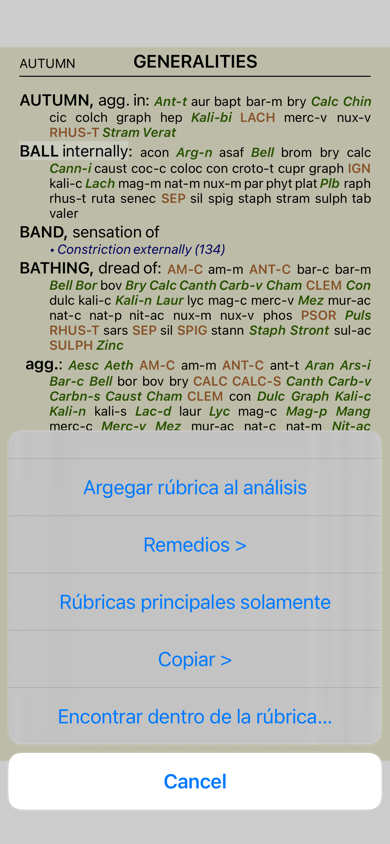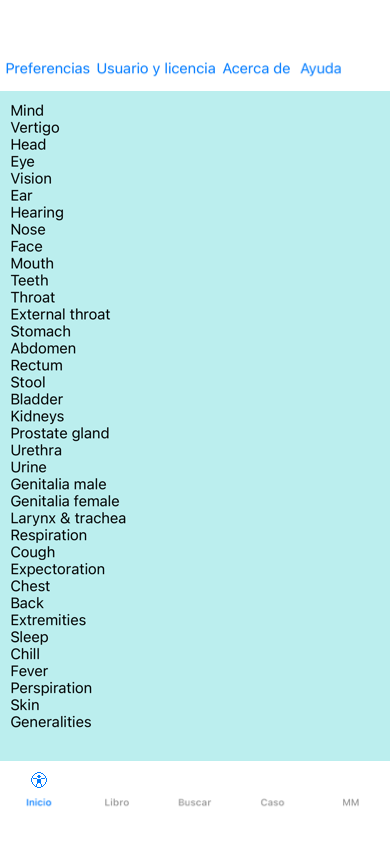 para encontrar rúbricas y remedios en el libro. Vea la sección Módulo Buscar para más detalles.