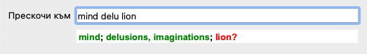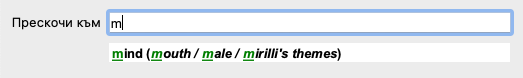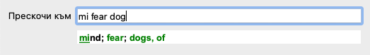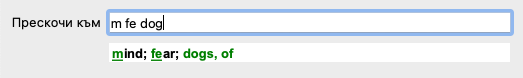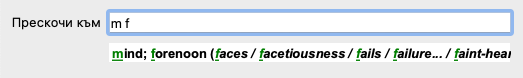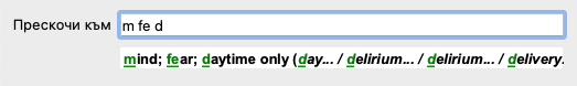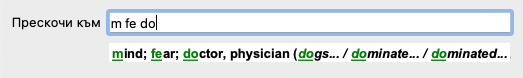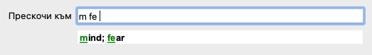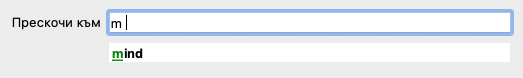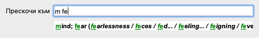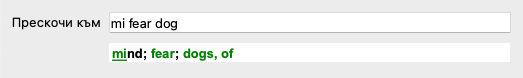 Докато пишете Ви се показва обратна информация за различни интерпретации, показващи се незабавно под полето Прескочи към.