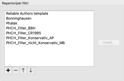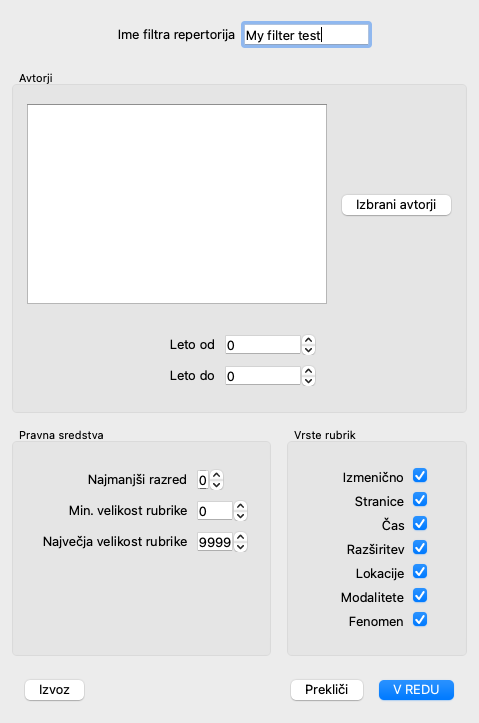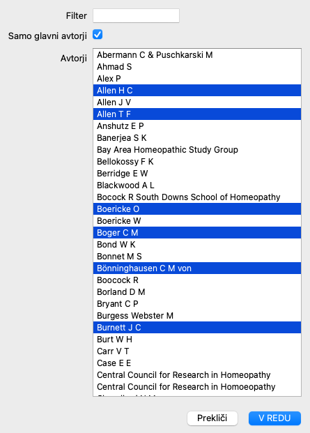 Privzeto so v filtru vsi avtorji. Če želite urediti seznam avtorjev, pritisnite gumb Izberite avtorje.