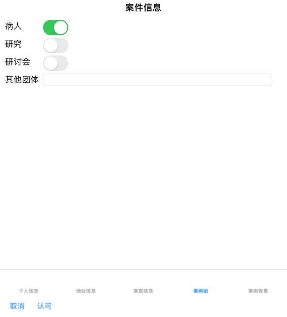 在Case 部分,你可以输入一些与病人本身无关的病例背景信息。