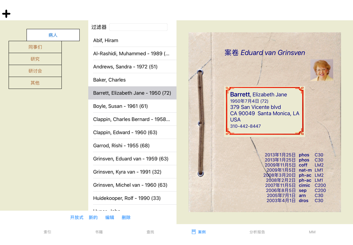 病例模块使你能够创建和组织病人的病例档案,登记你所开的处方,并创建和组织分析。