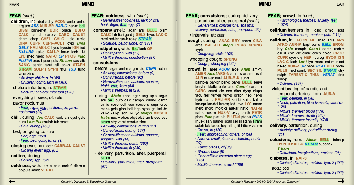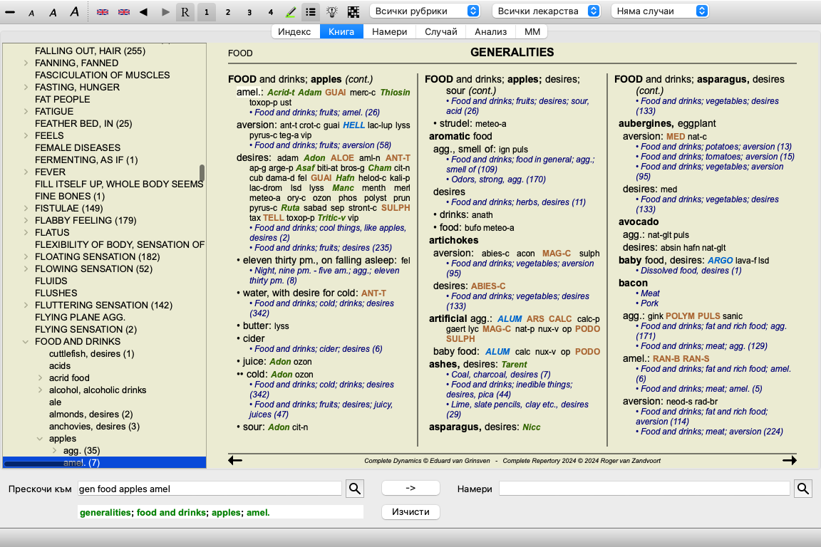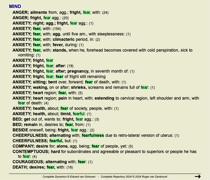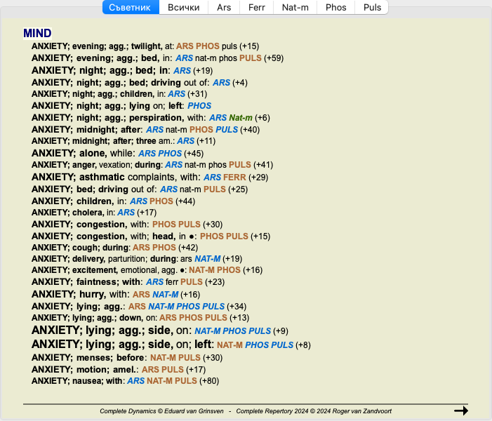 За да получите пълните детайли за всички рубрики, показани в Реверсивната Материя Медика, натиснете бутон