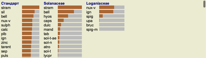 Въпреки че Sepia се класира най-високо, това не означава, че непременно това лекарство трябва да бъде предписано. В този случай ние искаме да разграничим Sepia и Nux Vomica, защото тези лекарства са комплементарни и двете са относително високо в класацията на анализа.