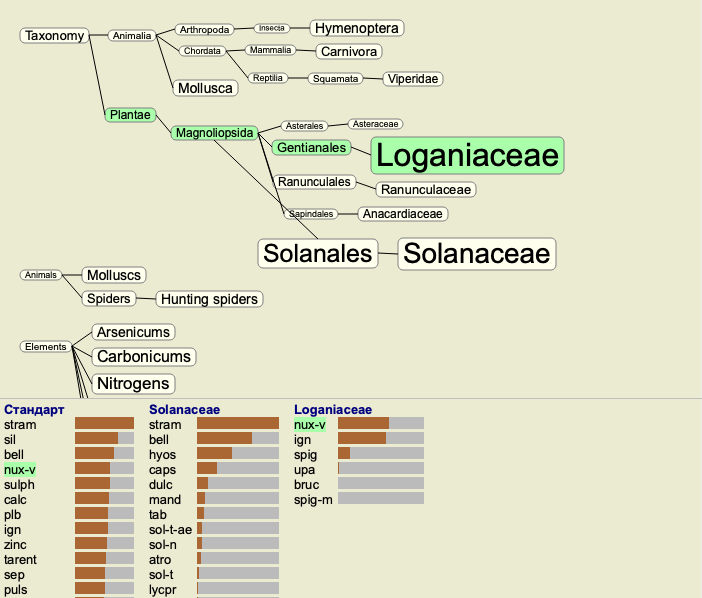 В примера, който виждате, най-релевантните семейства са Solanaceae и Loganiaceae. За Solanaceae е очевидно, тъй като Stramonium е член на това семейство. Но Вие вероятно ще искате да разберете защо Loganiaceae също е релевантно тук.