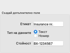 | Име на формулата | Тук можете да зададете име на формулата, например Фред-1. Това има ще бъде показано при анализа в модул Анализ. |