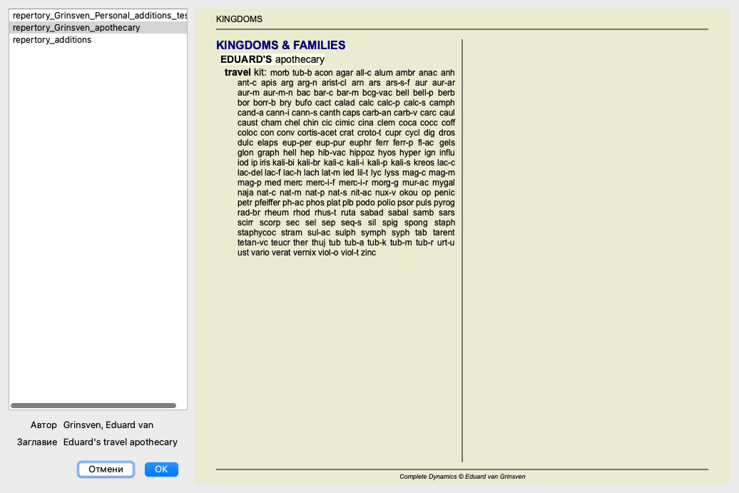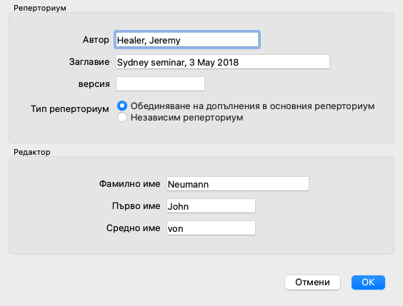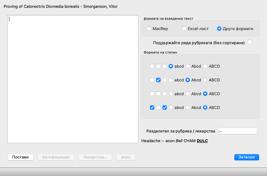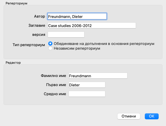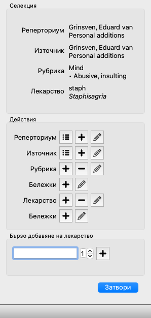 Имате възможност да правите лични добавки към реперториума чрез Редактор на Реперториума.