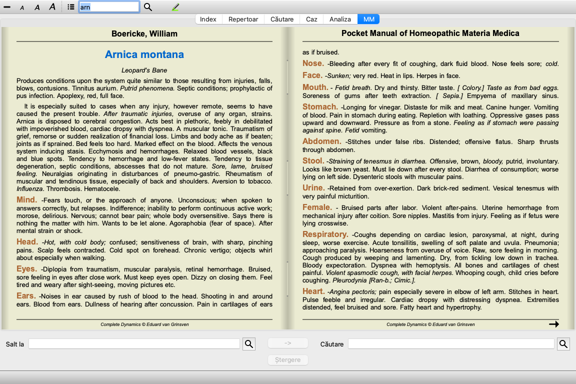 Mai multe Carti sunt disponibile in modulul Materia Medica. Disponibilitatea acestor carti poate varia, in functie de limba configurata.