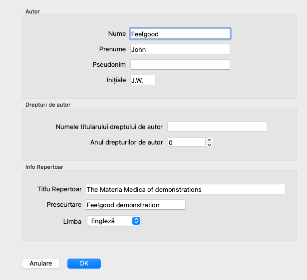 Puteți crea o Materia Medica nouă. (Optiunea de meniu MM / Creare Materia Medica noua).
